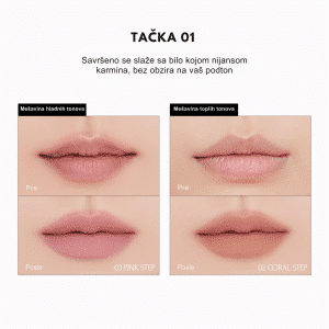 Hladna mauve mat nijansa sa laganom gel teksturom i čistim, ujednačenim efektom za moderan, elegantan i prirodno definisan izgled usana.