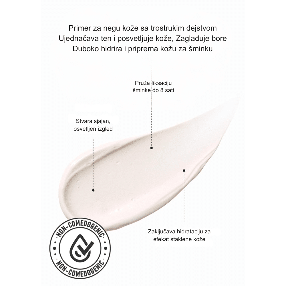 Pripremna krema koja zaglađuje kožu, poboljšava postojanost BB kreme i daje prirodan, blistav izgled tena.