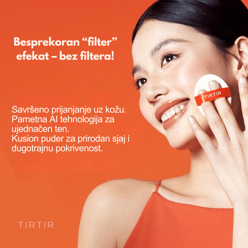 TIRTIR Mask Fit AI Filter Cushion #17C Porcelain je popularni korejski cushion puder koji pruža prirodno, ujednačeno prekrivanje i efekat nežne, filterom zaglađene kože. Formula je lagana, prozračna i postojana, sa blago mat završnicom koja izgled kože čini mekšim i ujednačenijim bez težine i osećaja „maske“. Namenjen je svima koji žele besprekoran ten uz prirodan izgled i dugotrajnu svežinu, čak i u uslovima nošenja zaštitne maske.