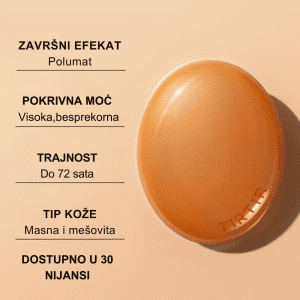 Mini pakovanje cushion pudera za prirodno prekrivanje, mat efekat i blistav ten tokom celog dana. Ujednačava kožu, smanjuje pojavu pora i fine linije, pružajući svež i uredan izgled.