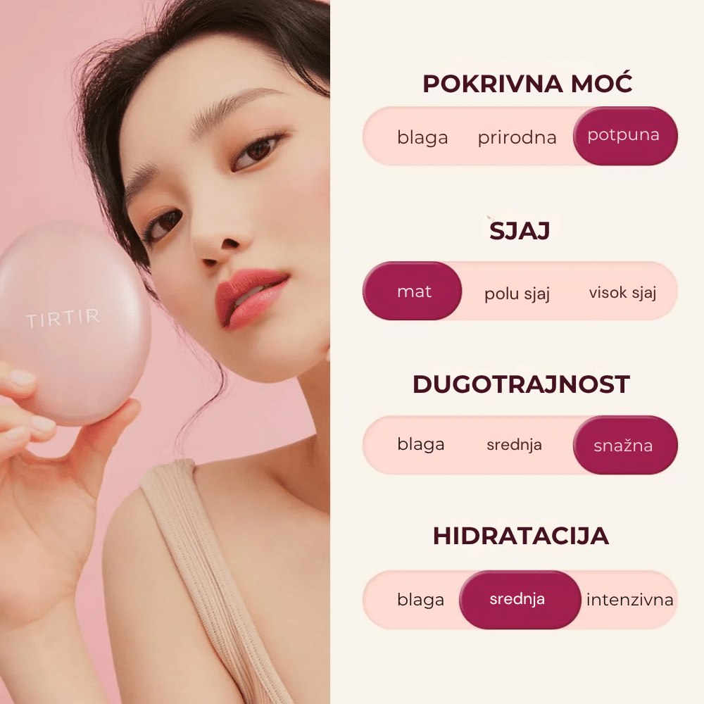 TIRTIR Mask Fit All Cover Pink Cushion Mini #13N Fair Ivory pruža visoku prekrivnost i prirodan, pročišćen “filter-skin” efekat sa dozom soft-rosy blistavosti. Formula deluje kao tvoja koža, samo ujednačenija, svetlija i nežno osvežena, savršena za prekrivanje crvenila, flekica, diskoloracija i proširenih pora. Tekstura je kremasta, lako se stapa sa kožom i ostavlja semi-mat, nežno rozikast finish koji daje odmoran i svež izgled bez težine.