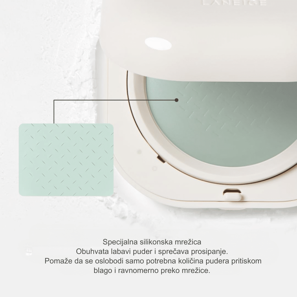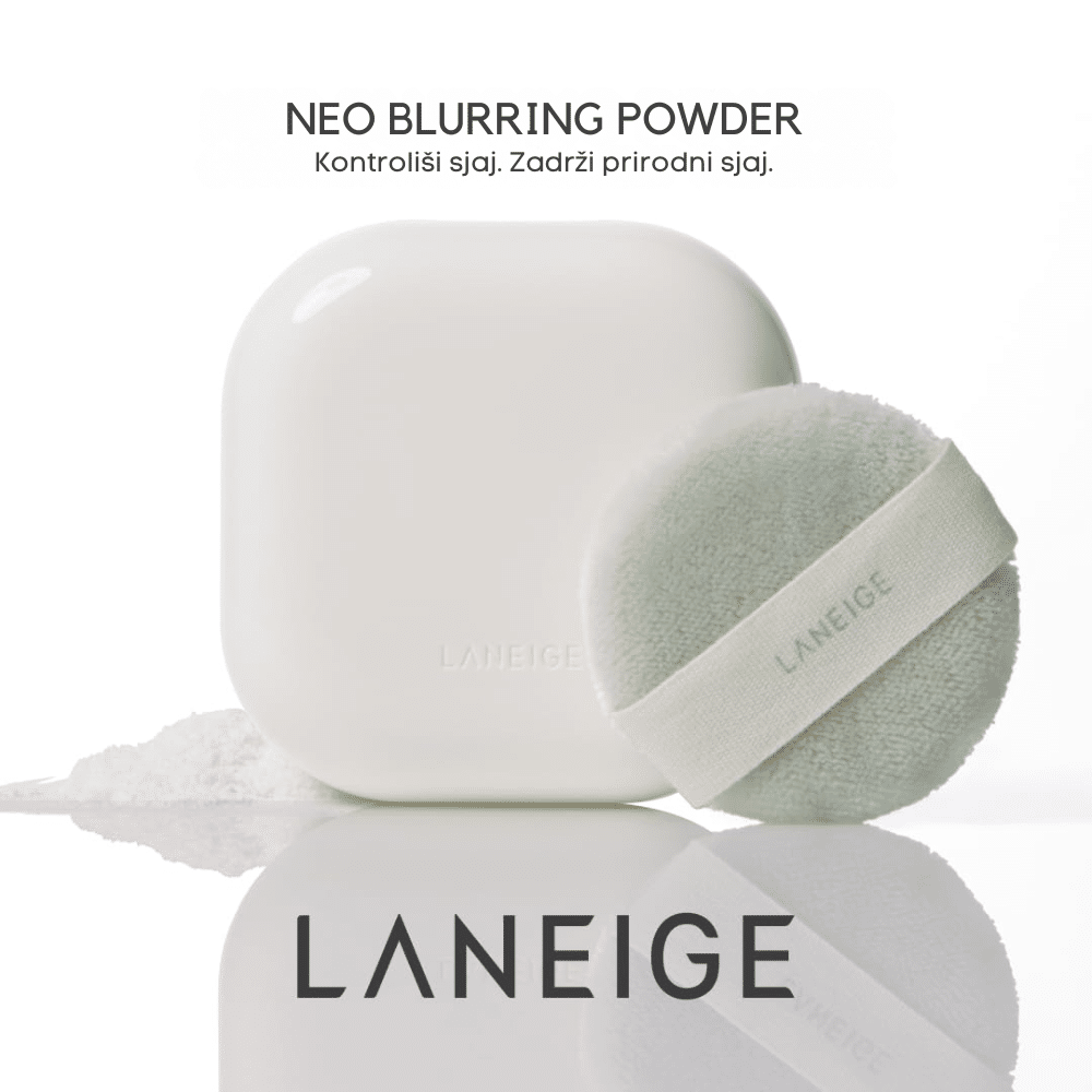 LANEIGE Neo Essential Blurring Finish Powder 7 g je ultra-fin finiš puder koji kombinuje negu kože i make-up efekt: mikroskopski zrnast prah stapa se sa kožom, zaglađuje teksturu, blago matira i ostavlja mekan, prirodno ujednačen izgled — bez osećaja suvoće ili teškog sloja. Idealno za fiksiranje šminke ili brzo „retuširanje” tokom dana. Proizvod dolazi u univerzalnoj prozirnoj verziji („transparent” / „clear” završnica) koja odgovara različitim tonovima kože — namenjena je onima koji žele izjednačen ten i mat finiš bez menjanja boje. Pogodna je za svetao do srednji ten, posebno za korisnike koji imaju normalnu do mešovitu kožu i žele kontrolu sjaja i gladak izgled šminke.