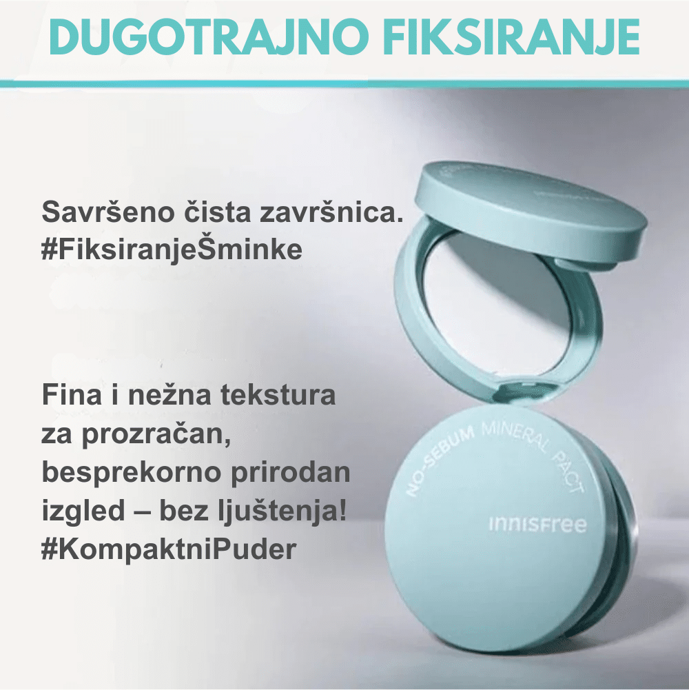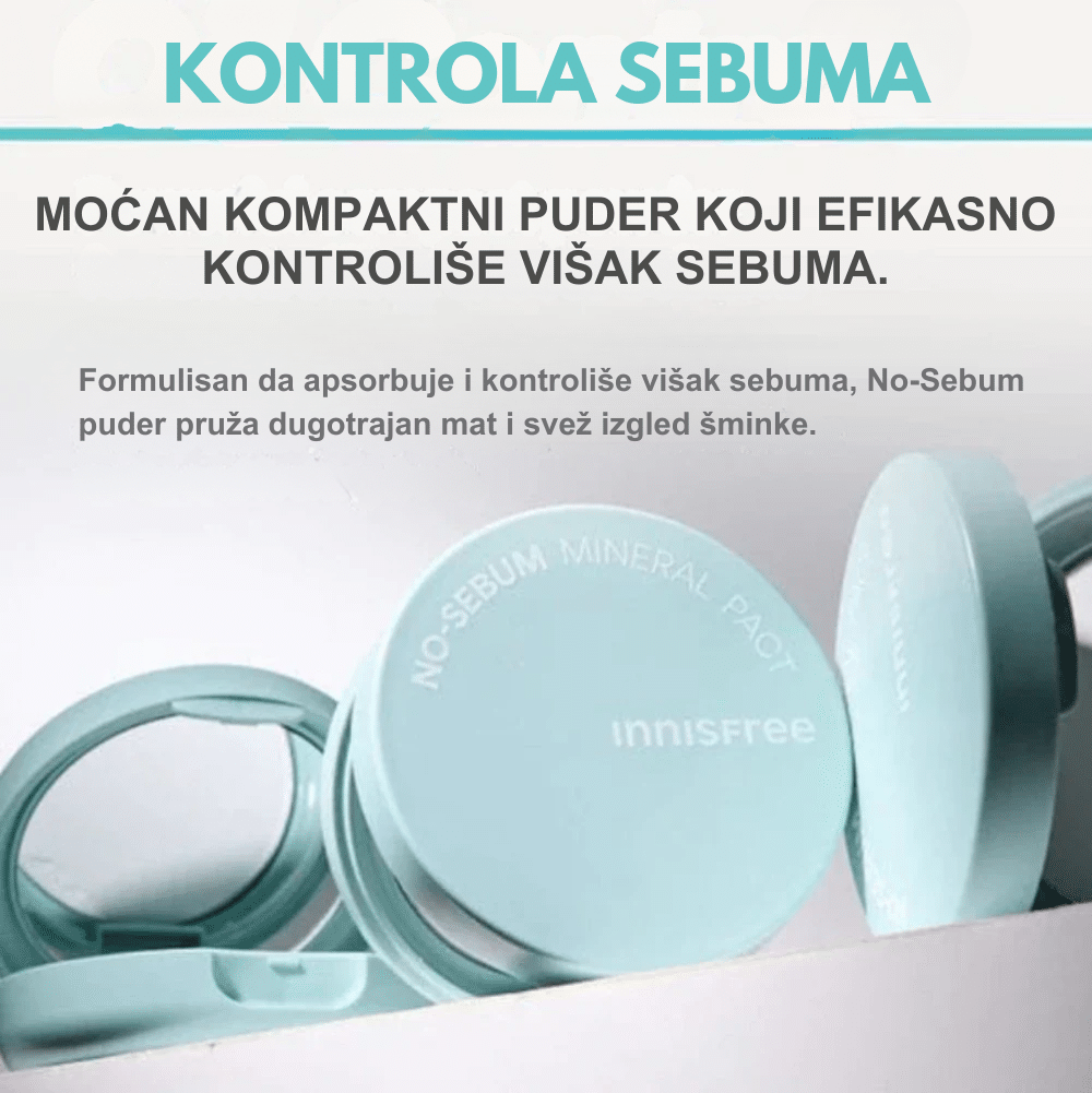 INNISFREE No Sebum Mineral Pact 8.5g je kompaktni puder koji pruža mat završnicu i kontroliše višak sebuma, ostavljajući kožu svežom i glatkom tokom celog dana. Obogaćen je prirodnim mineralima sa ostrva Jeju i ekstraktom mente, što pomaže u održavanju ravnoteže između ulja i vlage na koži.
