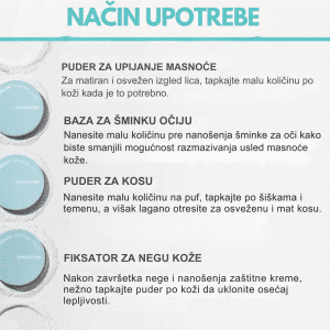 Na kraju rutine nege kože ili nakon nanošenja šminke, pomoću aplikatora nanesite proizvod na celo lice ili na područja sklona masnoći, poput T-zone. Može se koristiti i tokom dana za osvežavanje tena i kontrolu sjaja.