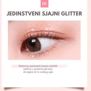 Coringco Shabam Shabam Romantic Glitter #02 Lake’s Light je ultra-svetlucava tečna senka sa visokim intenzitetom bisernih i reflektujućih čestica koje na kapcima stvaraju kristalno blistav, romantičan i vodeni „glass sparkle“ efekat. Njena lagana gel-textura nanosi se ravnomerno, brzo se suši i ostaje postojana bez razmazivanja, idealna za naglašavanje sredine kapka, unutrašnjeg ugla i kreiranje glamuroznih, svečanih i očaravajućih look-ova. Nijansa #02 Lake’s Light je hladna, vodeno-srebrna shimmer nijansa sa kristalnim refleksima koji podsećaju na svetlost koja treperi na površini jezera. Na kapcima stvara osvetljen, providno-blistav efekat koji je idealan za romantične, svečane i „wet sparkle“ look-ove.