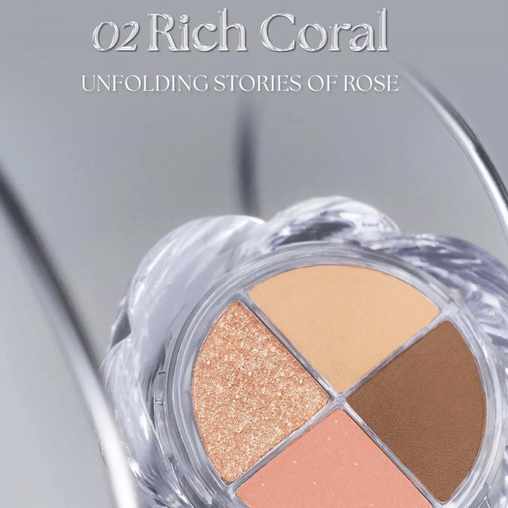 Muzigae Mansion Twist Pot Eye Palette 02 Rich Coral je kremasto-gel paleta u toplim koralnim i zlatnim tonovima koja pruža intenzivnu pigmentaciju, glatko blendanje i dugotrajnu postojanost, idealna za sveže, osunčane i vibrantne eye look-ove. Nijansa Rich Coral donosi kombinaciju toplih koralnih tonova, breskvastih nijansi i zlatnog shimmera, stvarajući osunčan, živ, razigran i izrazito svež eye look idealan za dnevne i letnje make-up stilove.