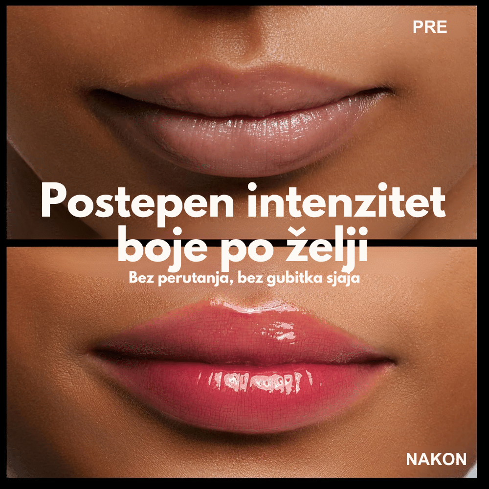 Lip tint sa mlečno-vina nijansom i staklastim sjajem koji pruža usnama elegantan i prirodan izgled.